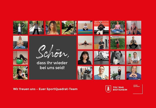 Vielen Dank an alle Mitglieder und Mitarbeiter, die uns diesen erfolgreichen und positiven Start ermöglicht haben. Wir freuen uns riesig, Euch wieder in unserem SportQuadrat begrüßen zu dürfen.