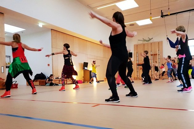 mit dem internationalen Zumba® Jammer Maurice Weindel und dem SportQuadrat-Team.
