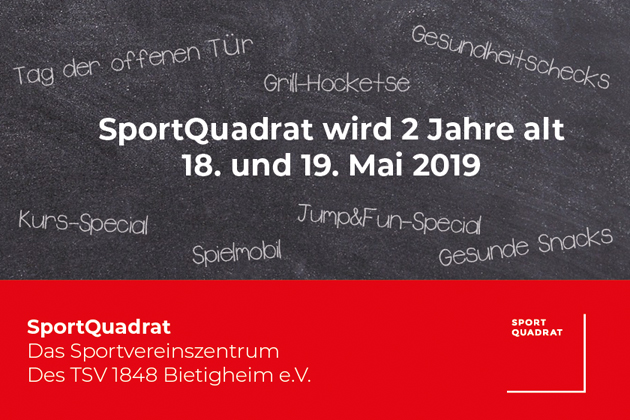 Das SportQuadrat feiert am 18. und 19. Mai 2019 sein zweijähriges Bestehen. Weitere Infos sowie das Programm folgen in Kürze.